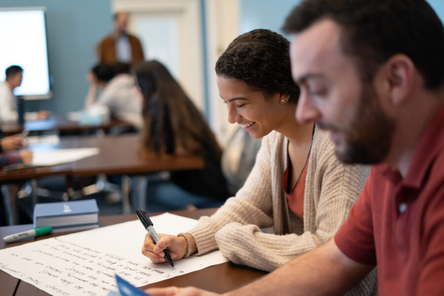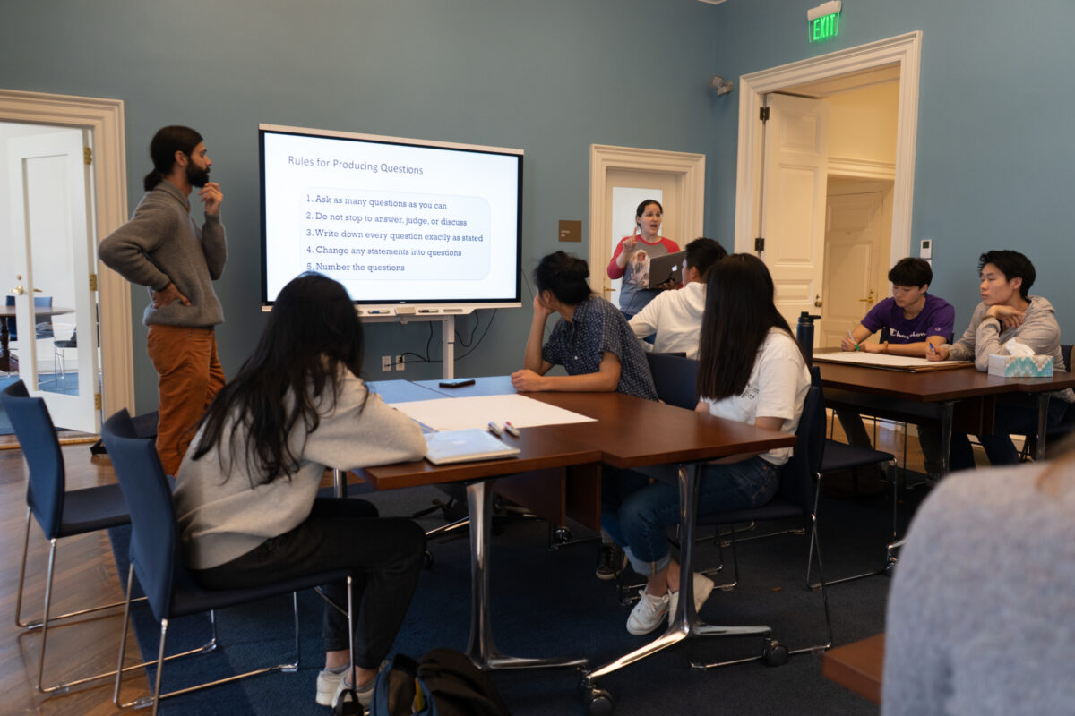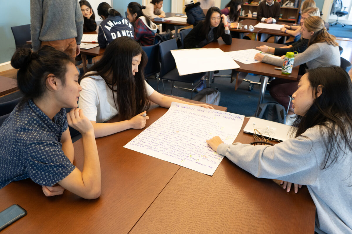 Biology instructor Andrea Bailey led the group through a generative session using the Question Formulation Technique, a method introduced to Andover faculty a few weeks ago by the Right Question Institute. For nearly an hour, students and faculty worked side by side to come up with questions that will direct the exploration of the Workshop’s theme. Questions included: