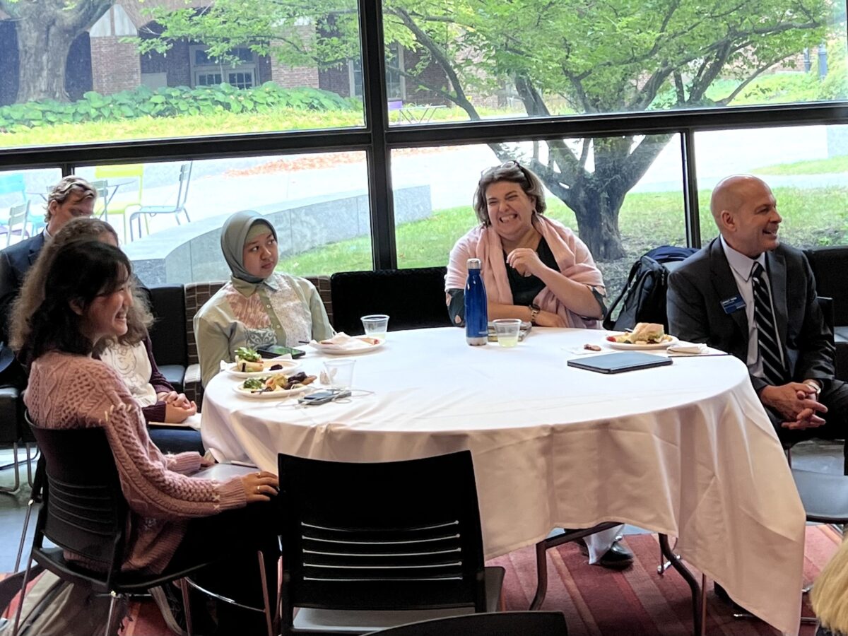 The day culminated in an engaging conversation with Amy Kellogg ’83, a former senior foreign affairs correspondent for Fox News. Their discussion about conflict resolution and social change offered invaluable insights from Marks’s decades of transformative work. As students, staff, and faculty listened intently, Marks shared stories of his work fostering dialogue in conflict zones around the world, from the Middle East to Africa. His reflections highlighted not only his successes but also the ongoing challenges in peace-building.