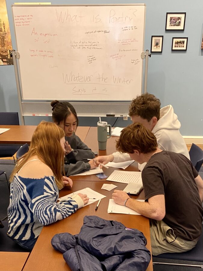 I first designed the Poetry Games workshop as a keystone element of a global consortium consisting of ten independent schools from around the world. The workshop was intended to help students from many different backgrounds collaborate on creative endeavors using multimodal expressions of the literary arts. However, the January 15th version of Poetry Games was the first in the context of Martin Luther King Day. As such, I was slightly nervous and mostly excited for how the session would play out. The session would be an opportunity to engage in what I have always felt was the unique capacity of the literary arts — the opportunity to speak, listen, and understand across differences. Phillips Academy students proved this with smiles, laughter, challenge, and delight, all framed in the context of play and the opportunity to share their collaborative poems with the whole group at the end of the workshop.