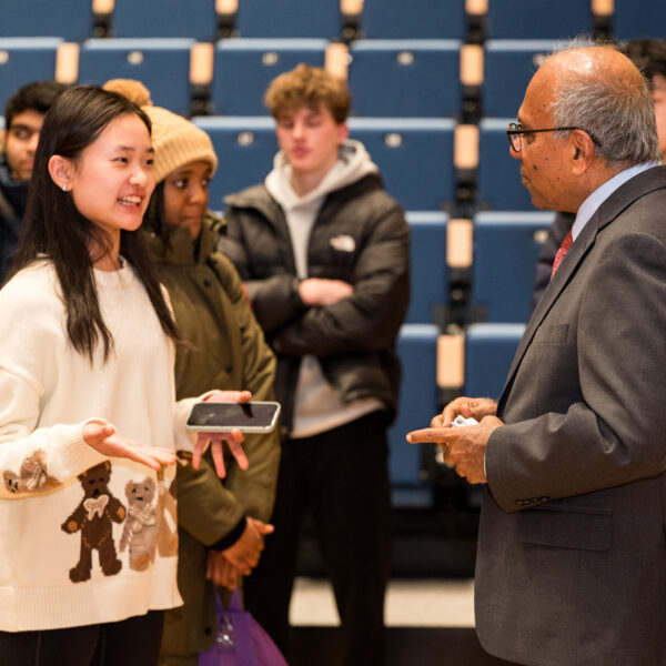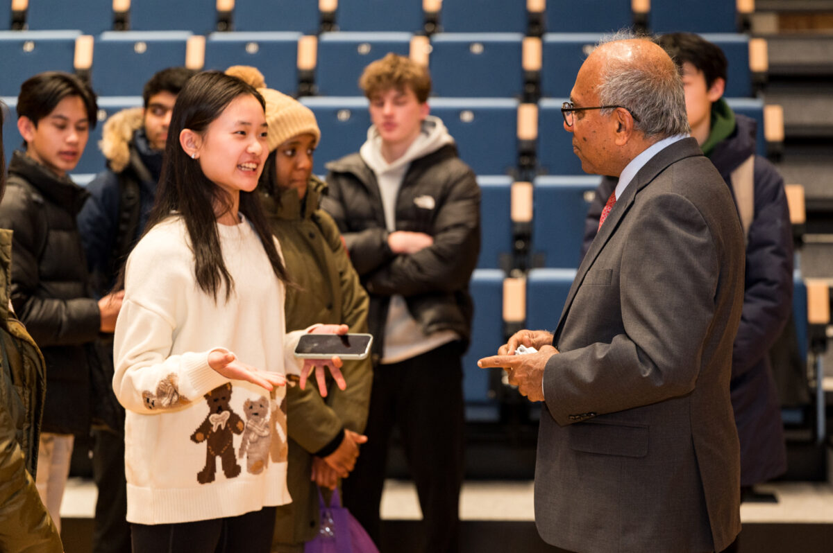 In late February, Andover’s new Falls Music Center was electric as Dr. Subra Suresh — renowned materials scientist, engineer, and entrepreneur — took the stage to explore the power of co-intelligence: the fusion of nature, human ingenuity, and AI to drive innovation in medicine, sustainability, and beyond.The excitement was palpable. Andover students, faculty, and staff, along with members of the broader community packed the hall for an illuminating discussion. Dr. Suresh captivated the audience with groundbreaking experiments — making paper from pollen and bending diamonds — leaving everyone in awe and sparking big ideas about the future of materials and technology.