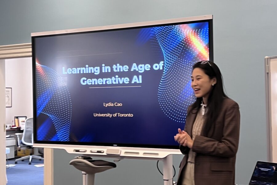 On Wednesday, February 21, at the Tang Institute’s February Lunch & Discussion, institute director Andy Housiaux introduced Dr. Lydia Cao to more than 50 members of the Andover community — a group of faculty, staff, and students who’d gathered to listen to her talk about learning in the age of generative AI [artificial intelligence]. A leading scholar in education and technology, Cao is also a former teacher whose research is partly driven by how educators will be able to use AI in their classrooms.